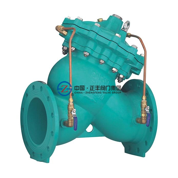 體式水力控制閥也是一種自動(dòng)類(lèi)閥門(mén),它的動(dòng)作原理、結(jié)構(gòu)與隔膜式水力控制閥基本一致。它具有隔膜式同樣的優(yōu)點(diǎn)和功能,它的感應(yīng)部件同樣是膜片,主要不同之處是主閥體采用斜體式,這樣使該類(lèi)閥門(mén)比隔膜式和活塞式的流阻系數(shù)更小,流量更大。而且通過(guò)對(duì)膜片下腔的結(jié)構(gòu)及閥瓣結(jié)構(gòu)的改進(jìn),使該閥的調(diào)節(jié)性更好。