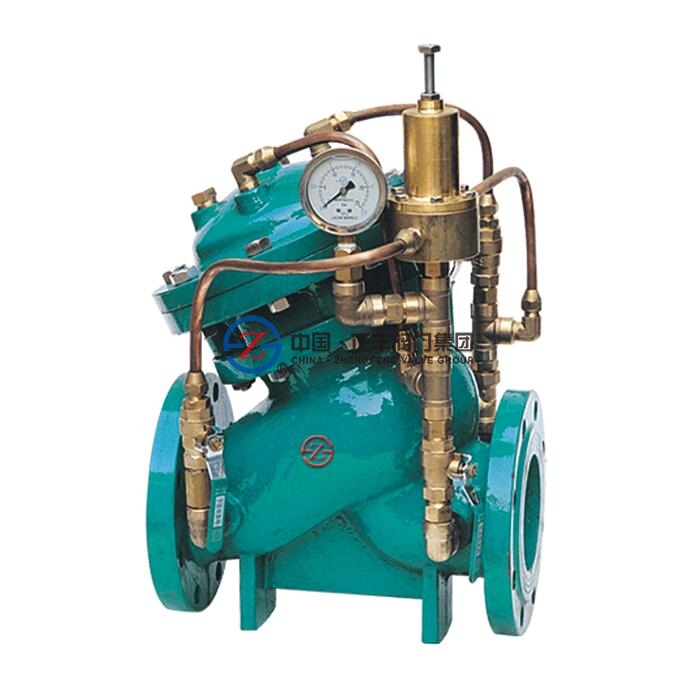 斜體式水力控制閥也是一種自動類閥門,它的動作原理、結(jié)構(gòu)與隔膜式水力控制閥基本一致。它具有隔膜式同樣的優(yōu)點和功能,它的感應(yīng)部件同樣是膜片,主要不同之處是主閥體采用斜體式,這樣使該類閥門比隔膜式和活塞式的流阻系數(shù)更小,流量更大。而且通過對膜片下腔的結(jié)構(gòu)及閥瓣結(jié)構(gòu)的改進(jìn),使該閥的調(diào)節(jié)性更好。